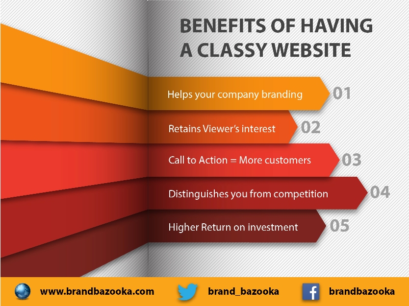 Having a classy website has many direct and indirect benefits. Much like having a great car or a great office creates a certain kind of impression about you, your website is the first place a person gets to know about your company to form a general first impression.